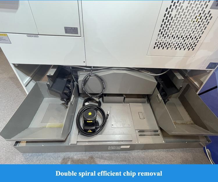 2. 10000 RPM spindle , belt connected 3. 24 disc manipulator tool magazine 4. Water tank + bed flushing chip 5. Clean air gun, working light, warning light |