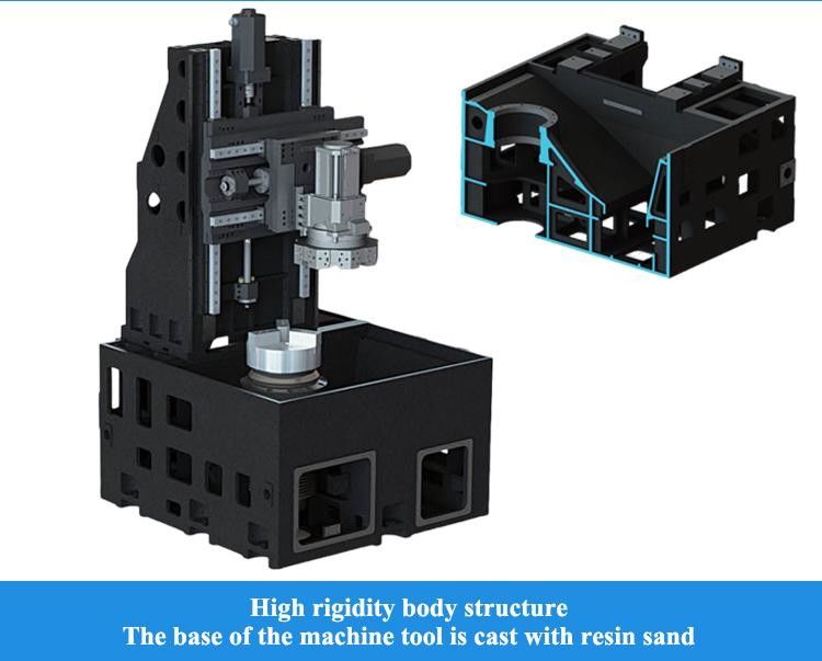 Whole body casting made by resinsand to reach low gravity,anti-vibration. Main contact surfacesall solved by scretch way, can keep the precision and stability during heavy duty cutting